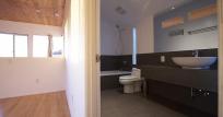 This apartment with nice shades of blue and a beautiful bathroom will help you to relax after work.
